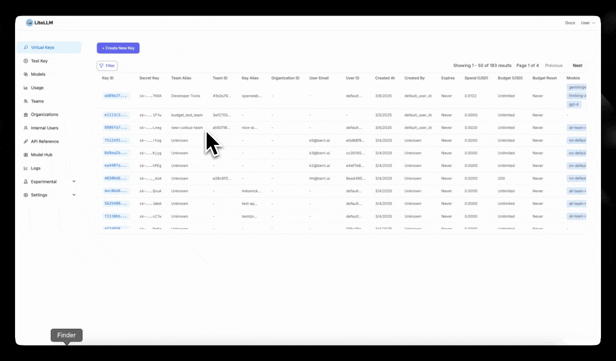 Navigate to http://localhost:4000/ui and create a new virtual Key.